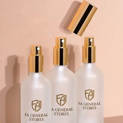 100ml Frosted Round Glass Bottle With Gold Mist Spray Caps